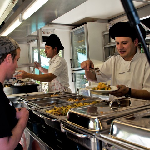 Our complete catering adaptability and mobility work to our advantage at commercial and film shoots. Our mobile kitchen and all the necessary catering equipment feed the team regardless of the complexity of the terrain and the number of team members.